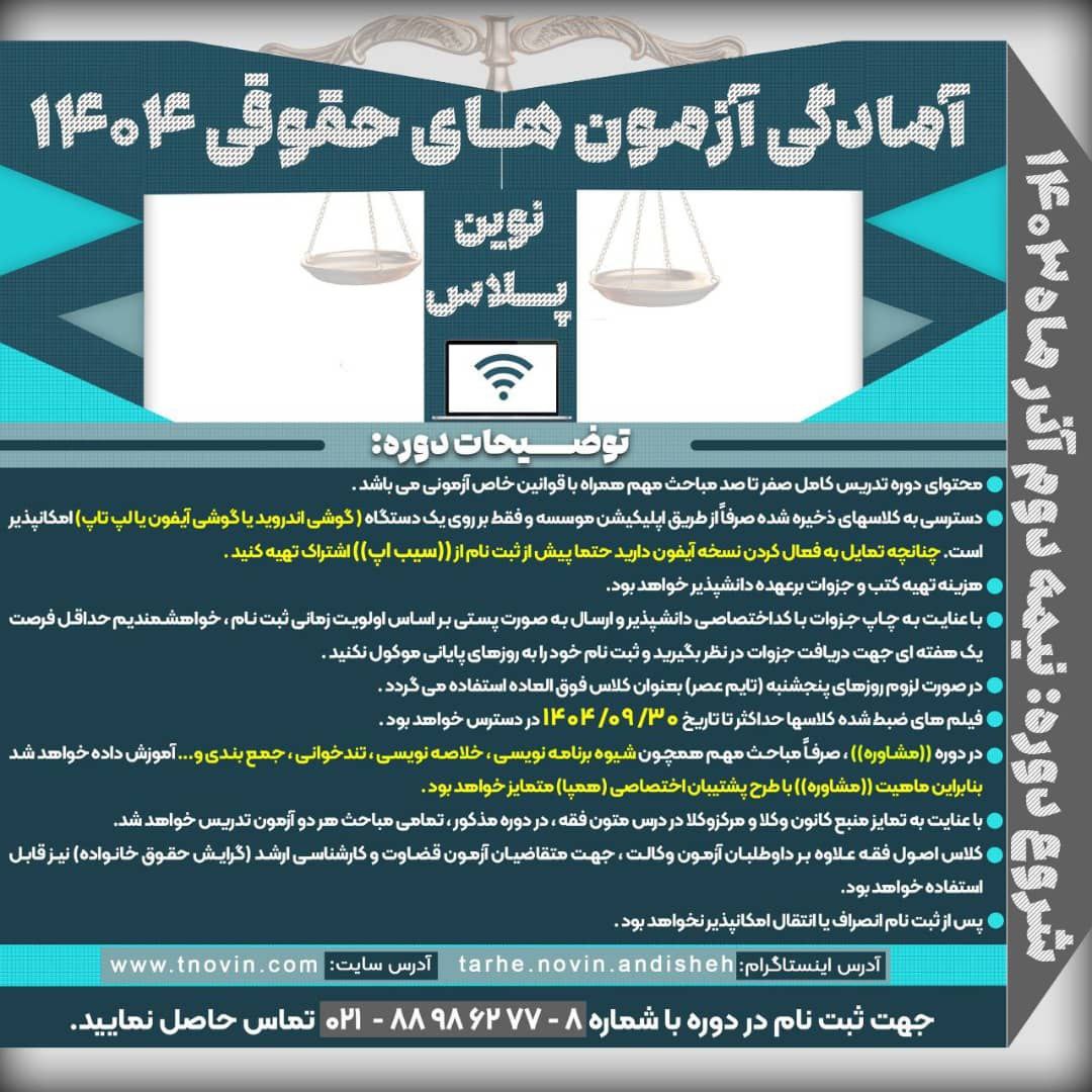 ثبت نام در جلسه صفرم دوره اول نوین پلاس (آنلاین) آمادگی آزمونهای حقوقی ۱۴۰۵