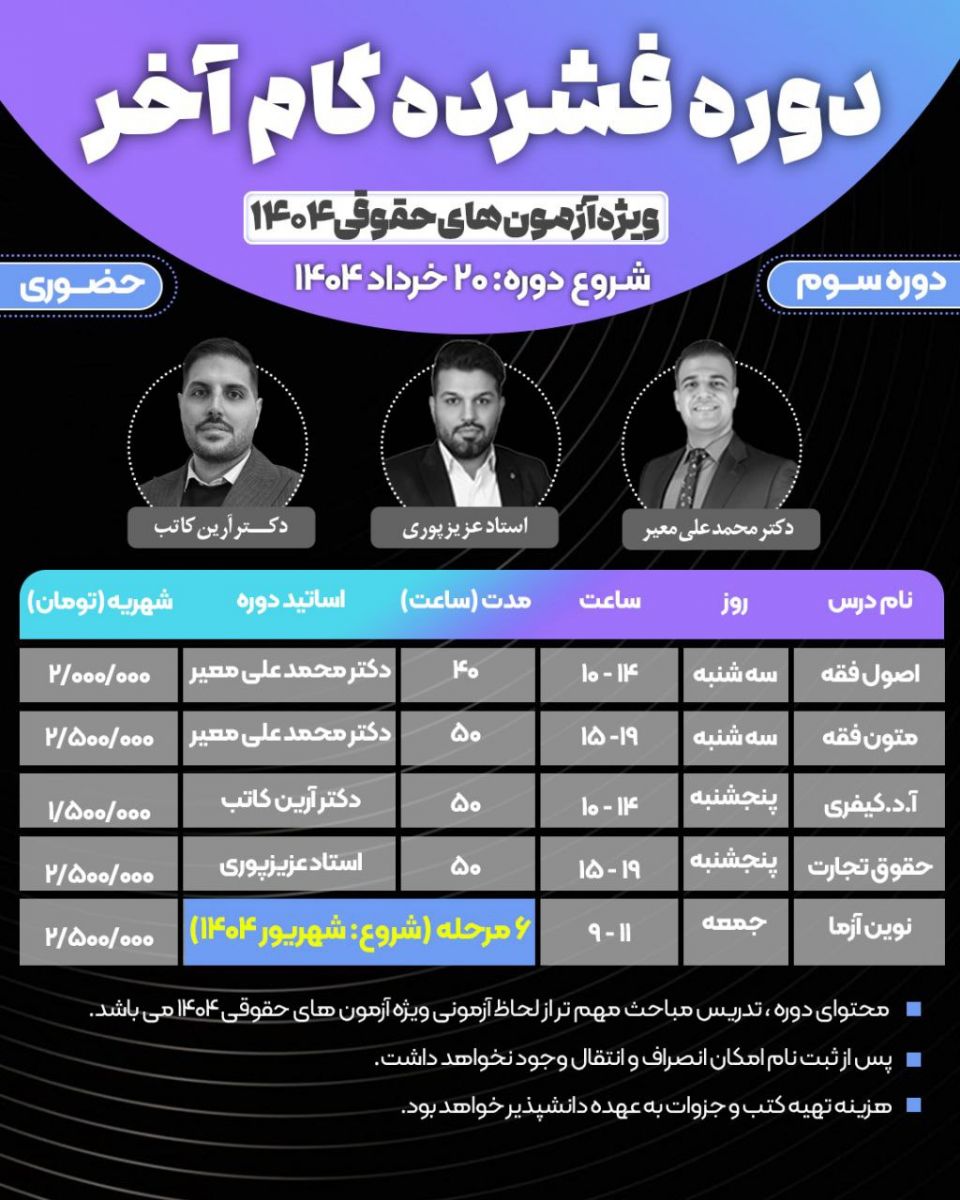 ثبت نام در جلسه صفرم دوره اول نوین پلاس (آنلاین) آمادگی آزمونهای حقوقی ۱۴۰۵